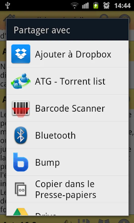 You can share each article (via email, Facebook, etc.), copy or listen to the text.