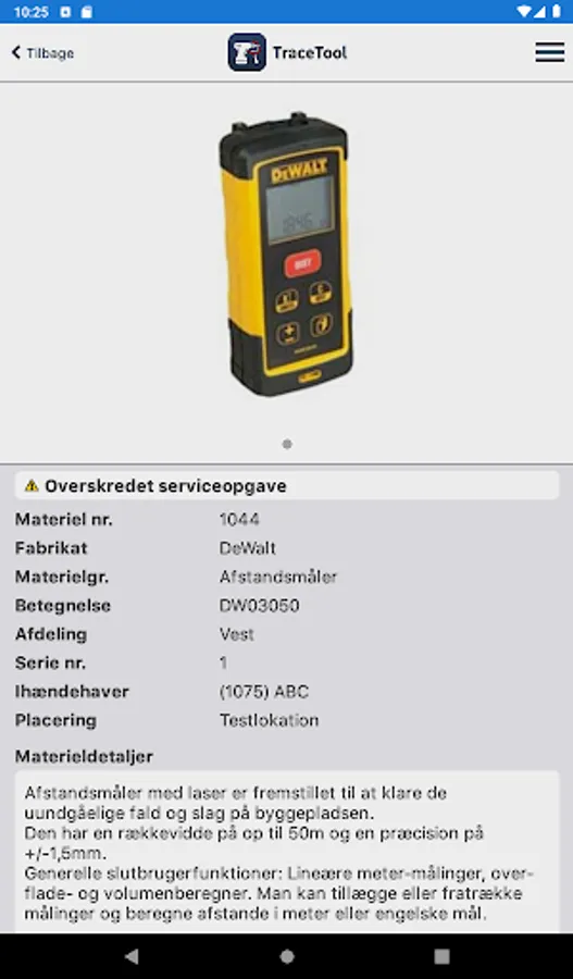 The TraceTool app is an extension of the TraceTool equipment management system. The TraceTool app makes it possible to scan and search for equipment and employees, hand in and hand out equipment, complete service tasks, and much more.