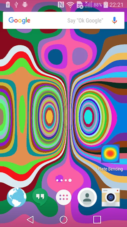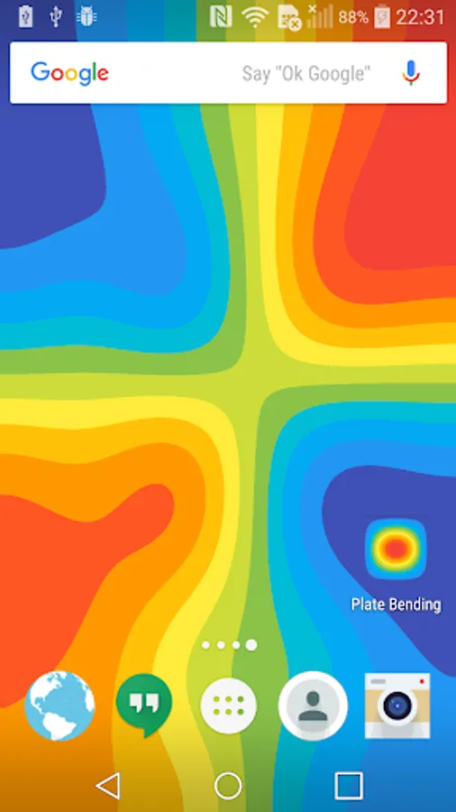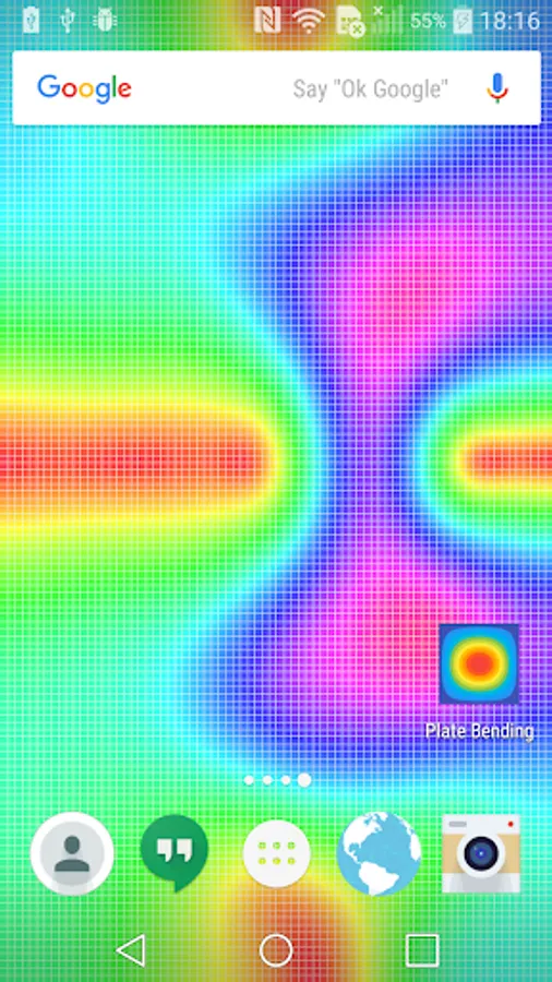 Plate Bending is an interactive Android live wallpaper(it can also be used as a standalone app) that calculates in real time the distribution of deflections and internal forces - stresses of a simply supported rectangular plate subjected to a concentrated load .The rectangular plate has the same dimensions as the screen window in which the app is being displayed and your finger represents the concentrated load. As you move your finger the distribution of deflections/forces changes and this creates beautiful and colorful 2D contour plots on your home screen!