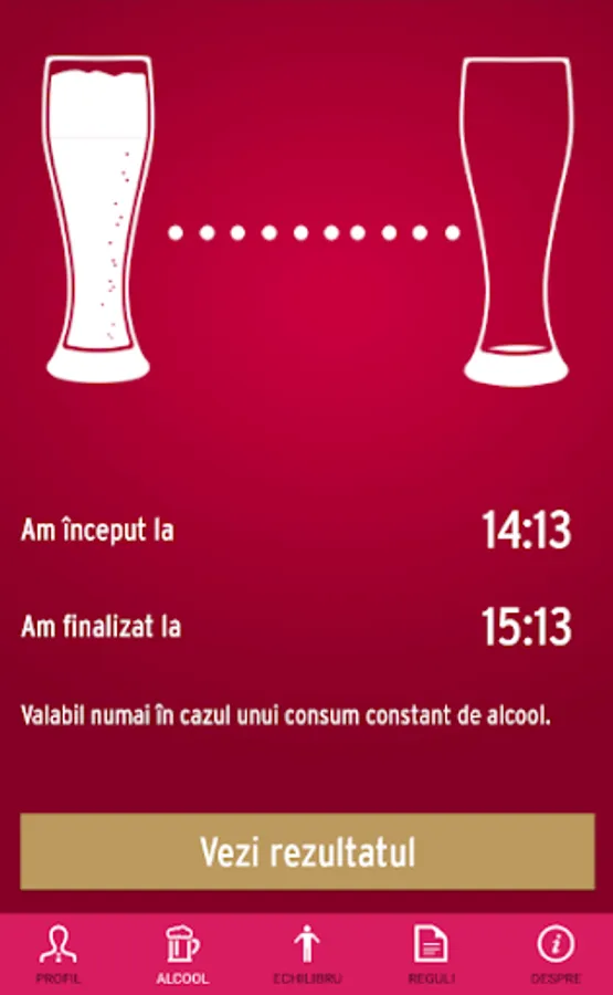 All you need to do is to enter the quantity of alcohol consumed, choose your gender, weight, height and the application calculates the time when your level of alcohol in blood reaches approximately zero.