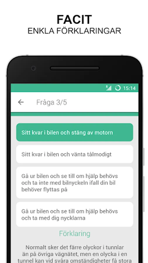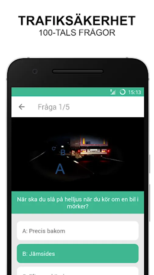 The questions are designed according to the Swedish Transport Administration's questions and have a high degree of difficulty. When you pass the test on the app, you are ready for the traffic safety part.