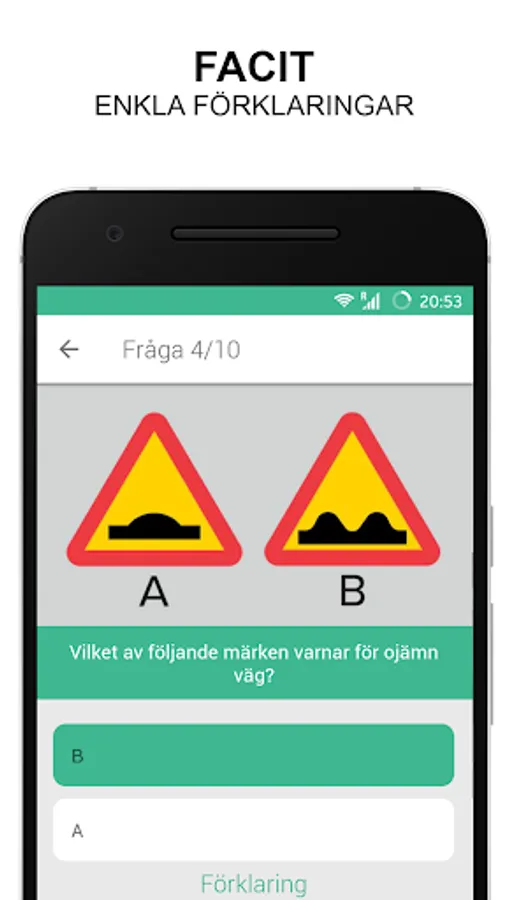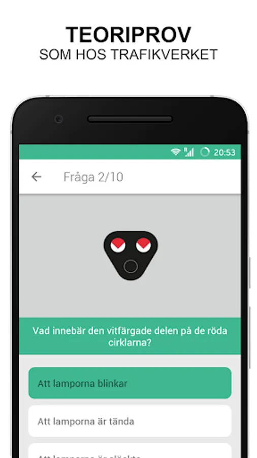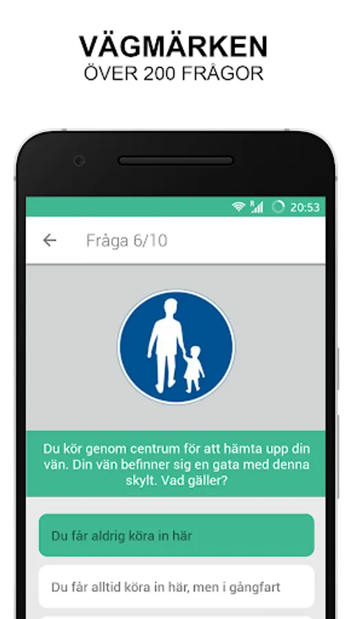The questions are designed according to the Swedish Transport Administration's questions and have a high degree of difficulty. When you pass the test on the app, you are ready for the road signs section.