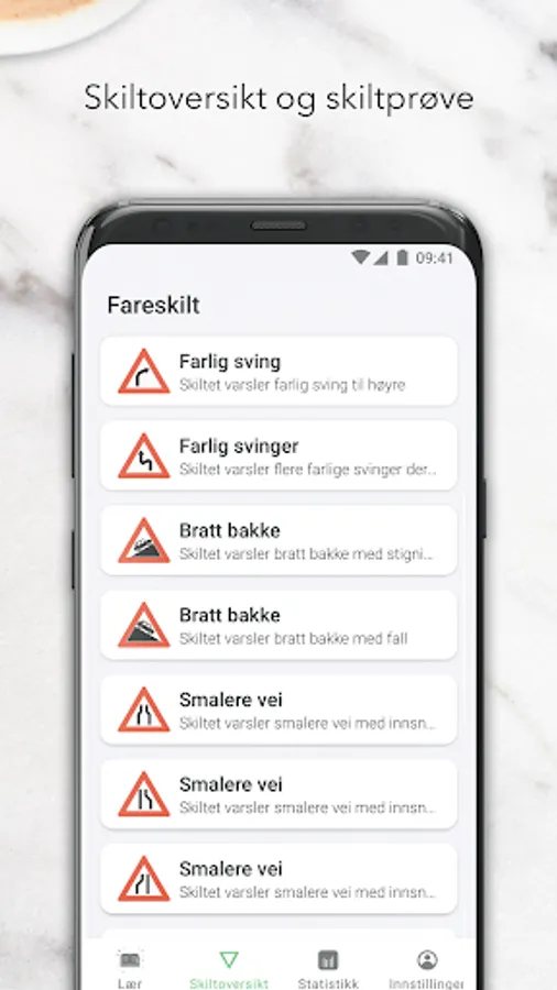 Own sign test tests and teaches you what you need to know about signs and road markings.