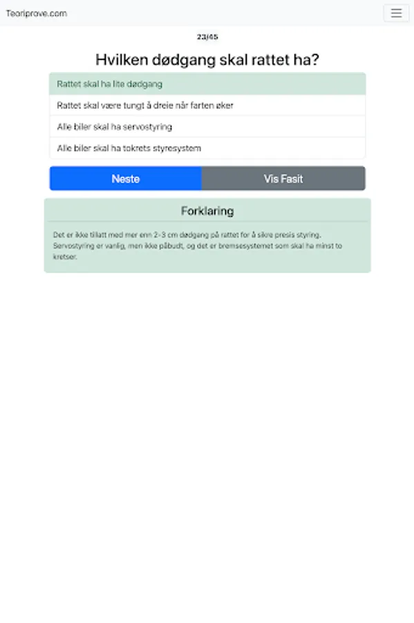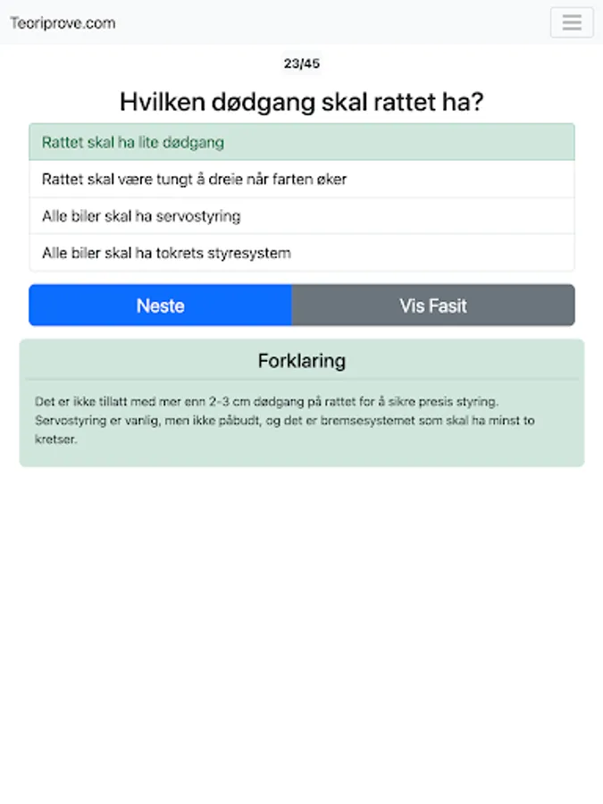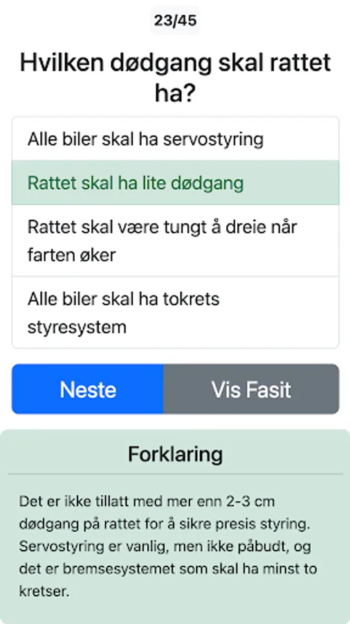 I appen følger du din progresjon og kan se når du er godt nok forberedt til å bestå den offisielle teoriprøven.
