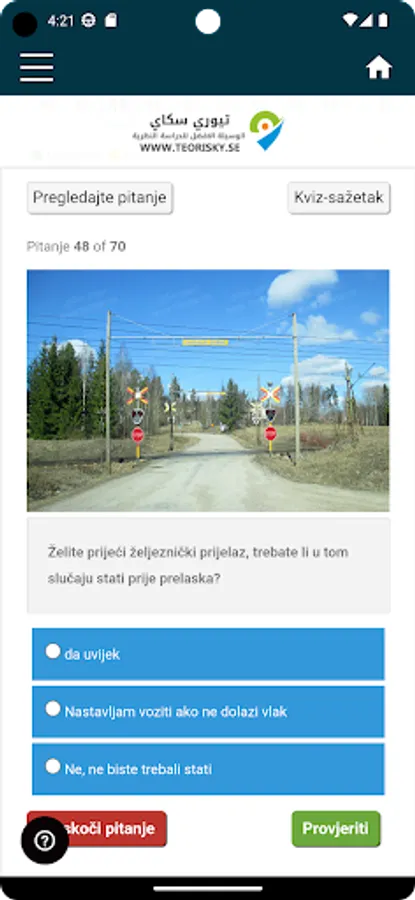 Teorisky - the electronic booklet for driving license in Sweden in Croatian language, enables the student to study for a theoretical driving license in Sweden because it contains models of theoretical questions and theoretical driving lessons in a coordinated and detailed manner.