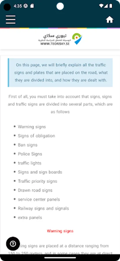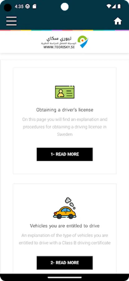 Teorisky - the electronic driving license book in Sweden in English, allows the student to study for the theoretical driving license in Sweden as it contains theoretical question models and theoretical driving lessons in a coordinated and detailed manner.
