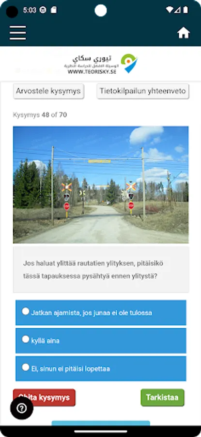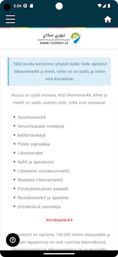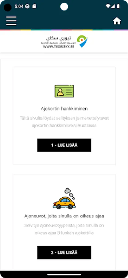 Teorisky - Swedish driver's license e-book in Finnish, enables a student to study for a theoretical driver's license in Sweden, because it contains theoretical question models and theoretical driving lessons in a coordinated and detailed manner.