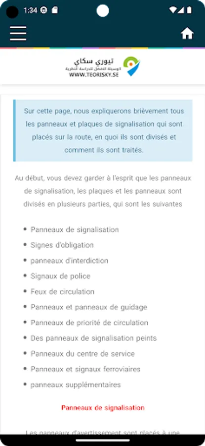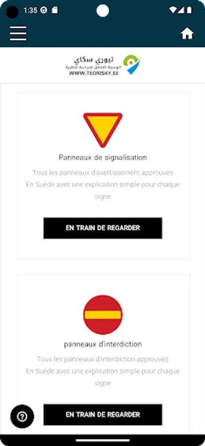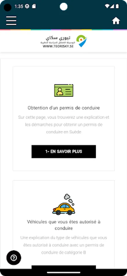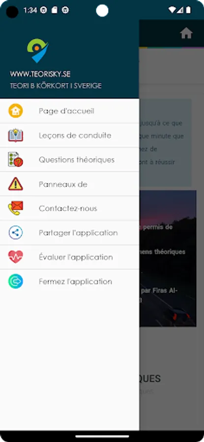 Teorisky - the electronic driving license book in Sweden in French language, allows the student to study for the theoretical driving license in Sweden because it contains models of theoretical questions and theoretical driving lessons in a coordinated and detailed way .