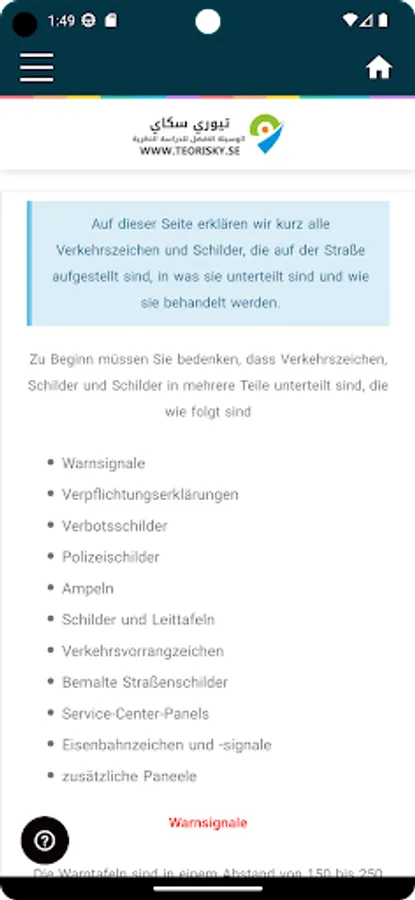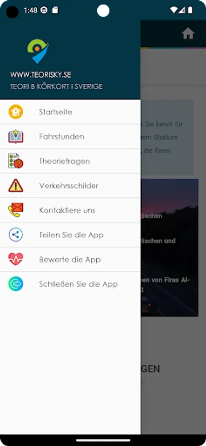 Teorisky - the electronic driver's license book in Sweden in German, enables the student to study for the theoretical driver's license in Sweden, as it contains coordinated and detailed theoretical question models and theoretical driving lessons.