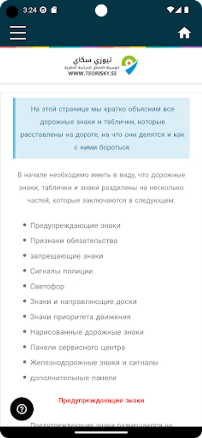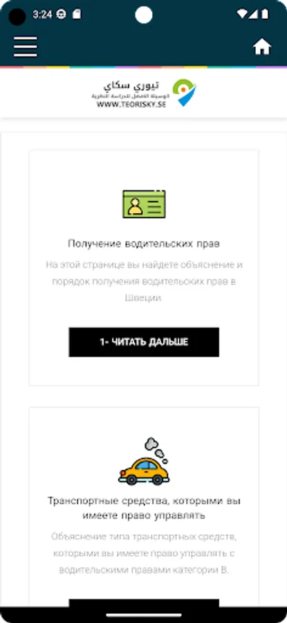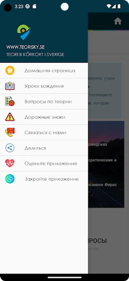Teorisky is an electronic book of driving license in Sweden in Russian that allows the student to study for a theoretical driving license in Sweden, as it contains models of theoretical questions and theoretical driving lessons in a coordinated and detailed manner.