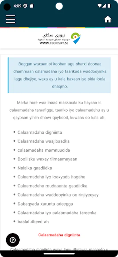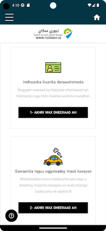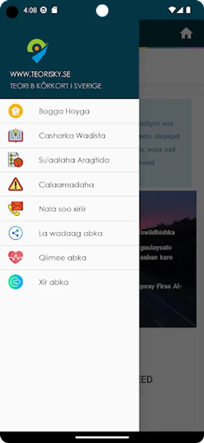 Teorisky - Buugga shatiga wadista elektaroonigga ah ee Sweden oo ku qoran af-soomaali, wuxuu u ogolaanayaa ardaygu inuu wax ka barto shatiga wadista ee Iswidhan maadaama uu ka kooban yahay moodallo su'aalo aragtiyeed iyo casharro waditaaneed oo isku xiran oo faahfaahsan.