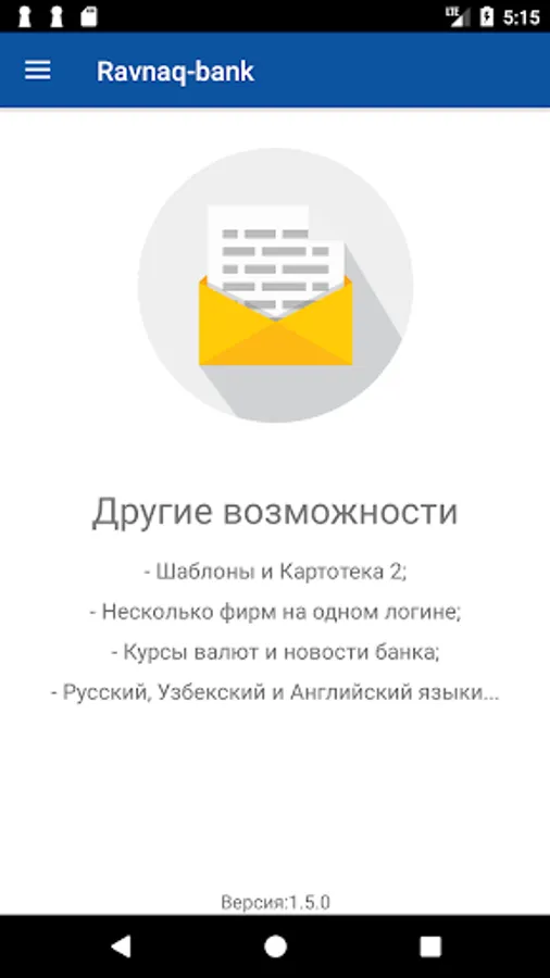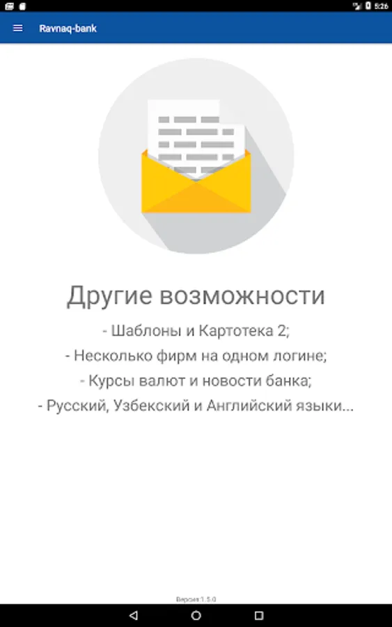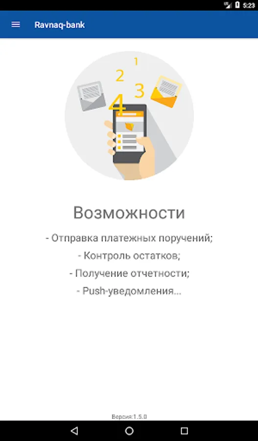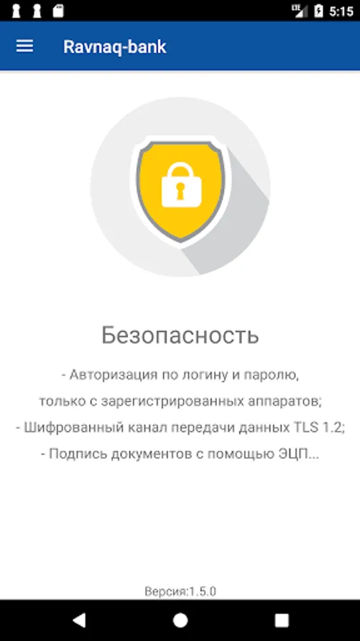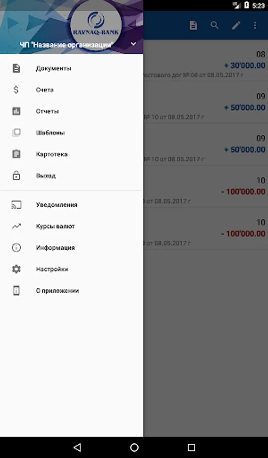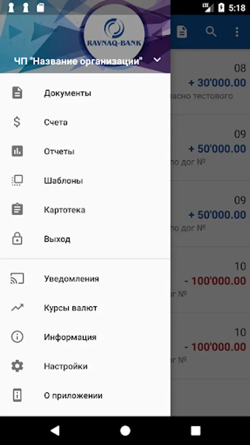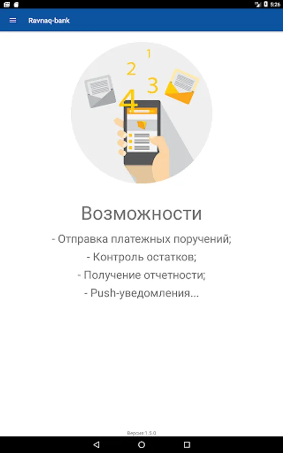 Mobile application Ravnaq-mobile - a mobile application for the bank's legal entities and private entrepreneurs are clients CHAKB «Ravnaq-bank».