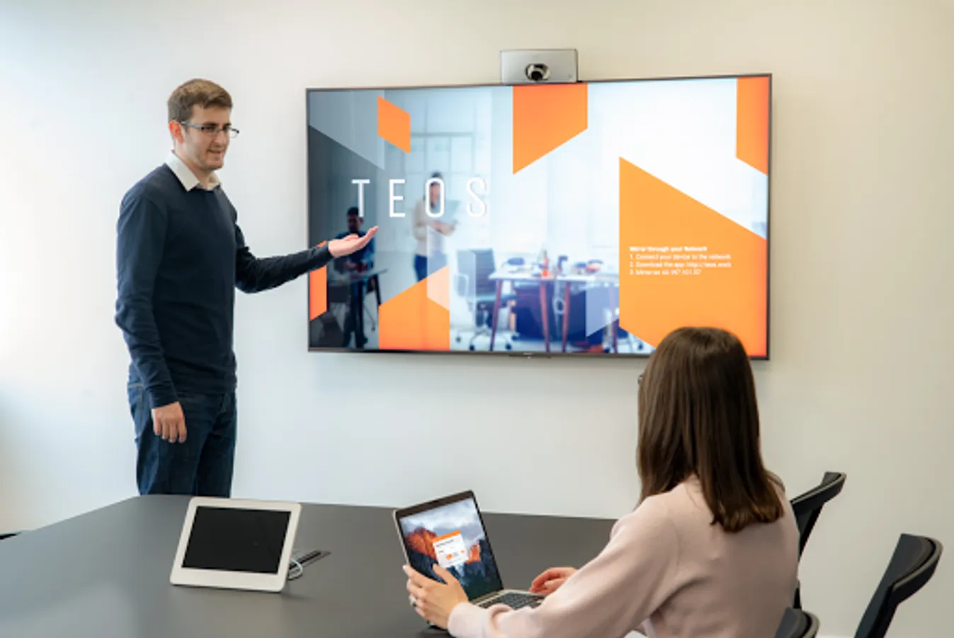 TEOS Connect makes meetings more efficient and less stressful, with quick set-up and no messy wires to worry about. There's no extra hardware needed – the technology’s built right into BRAVIA so you’re ready to go.