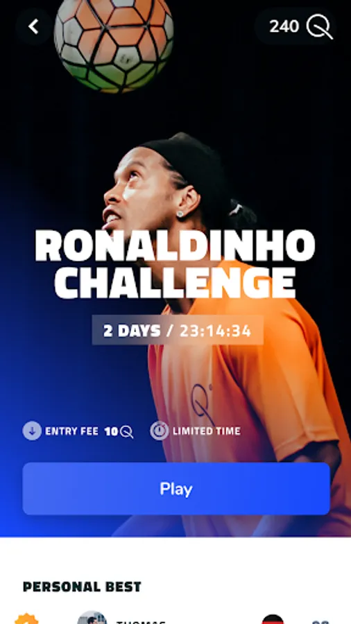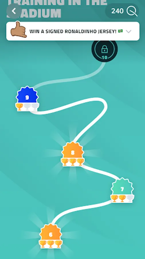 Compare your skills in Single Player mode to the greatest football stars of all time. They show you a trick that the better you perform the more trophies you get. Tricks are getting more and more difficult as you are going towards Ronaldinho's dream team. You can also unlock bonus stages by getting great results on single stages.