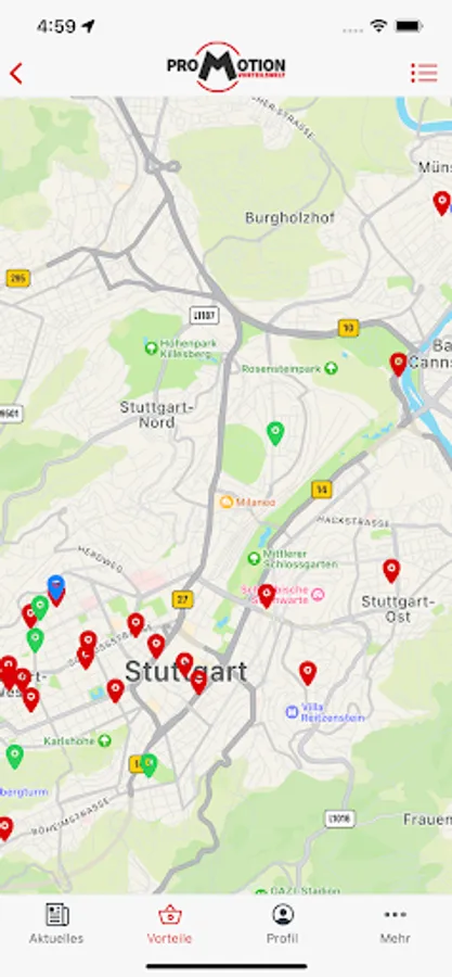 With the new Vorteilswelt app from Vereins Promit GmbH, you'll never miss news, promotions and events in and around Stuttgart again. Discover attractive savings offers or opportunities where you get something for free. Thanks to the clear map display, you always have an immediate overview of all deals and savings in your area.