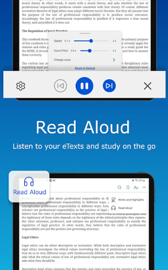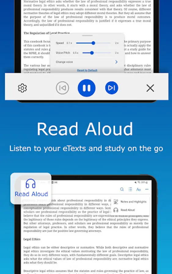 ∙ Listen on the go with Read Aloud – customize the voice, pitch, and speed.