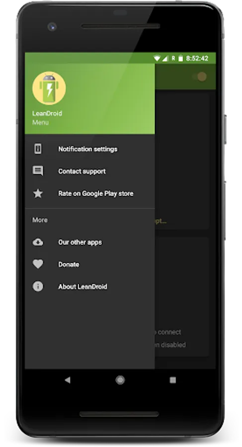 Connections are automatically restored when the screen is turned back on, or unlocked. You may also choose to restore connections periodically while the screen is off to allow for push notifications and background sync. Only connections that were automatically disabled by LeanDroid are re-enabled. Connections that were manually disabled are left untouched.