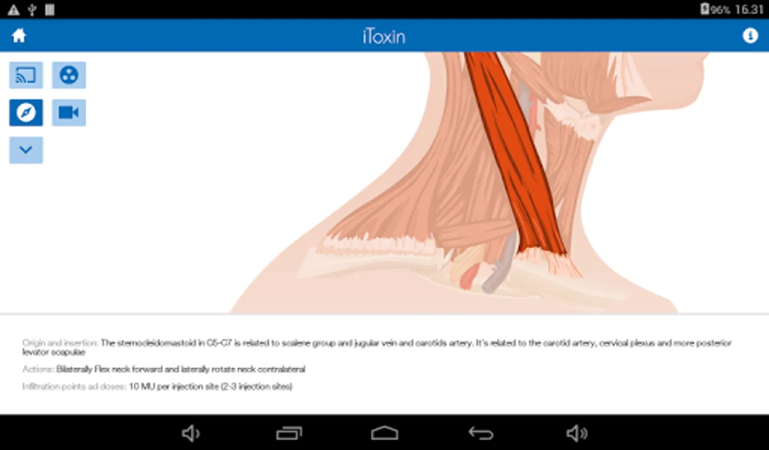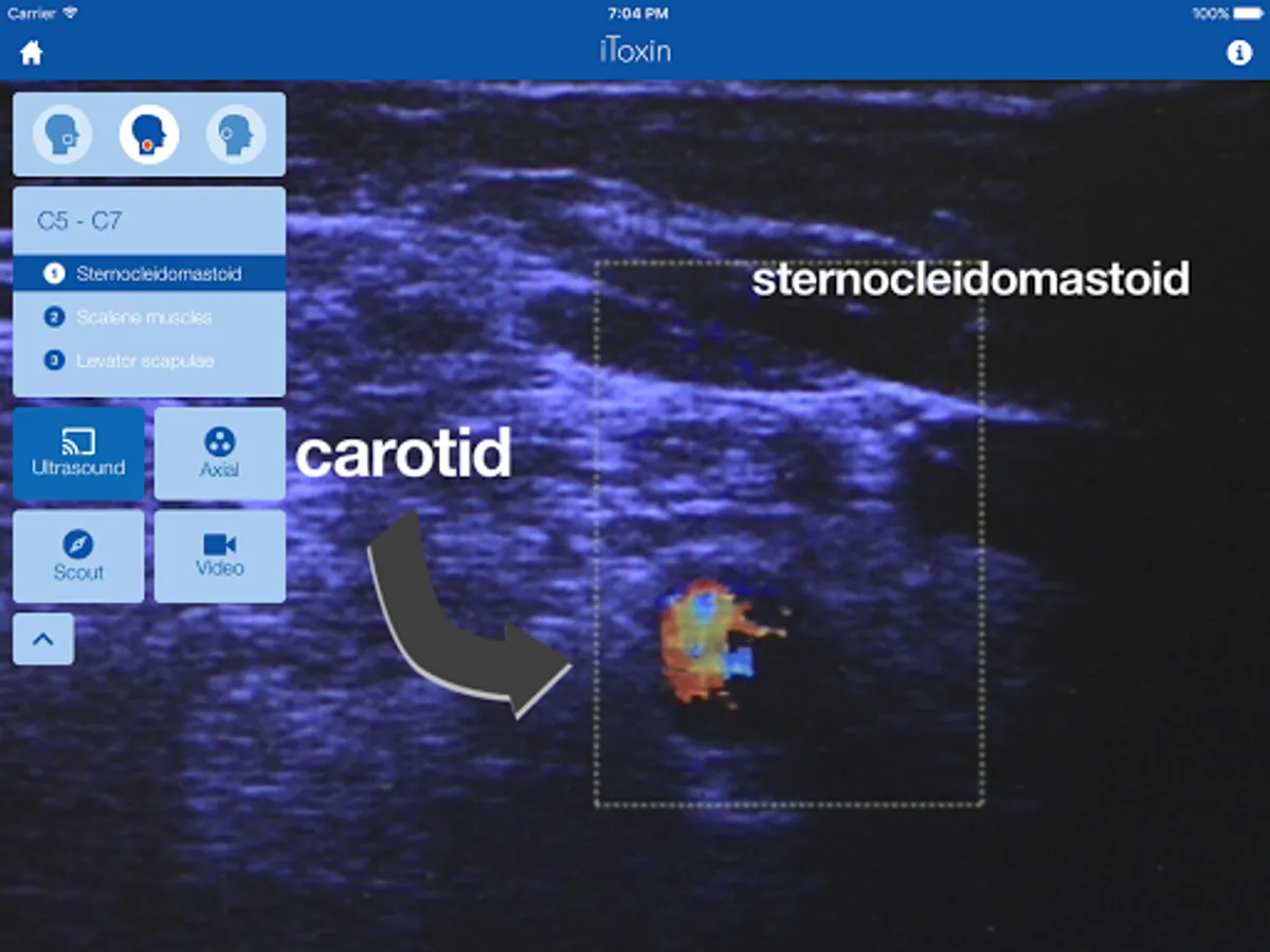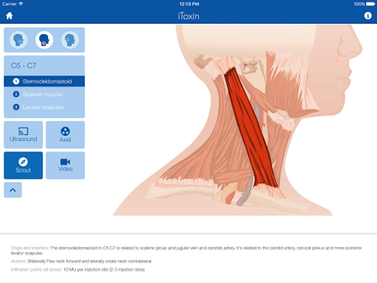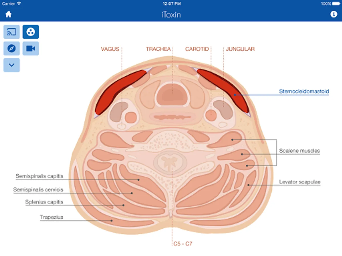 This App is a guidance for a better understanding about how to use the ultrasound technique as a guidance to infiltrate Botulinum Toxin in the muscles involved in cervical dystonia and in Parotid and Submandibular glands.