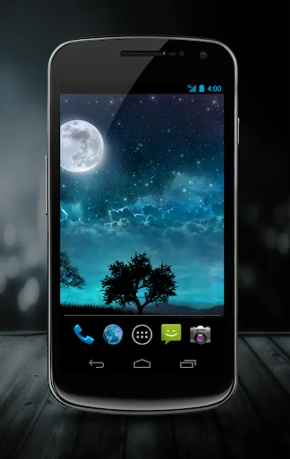 This live wallpaper features a relaxing night scene, with dreamy blue color tone, sparkling and shooting stars and tree silhouette. When you swipe to change home screens, the scene moves with parallax effect to simulate 3D space.