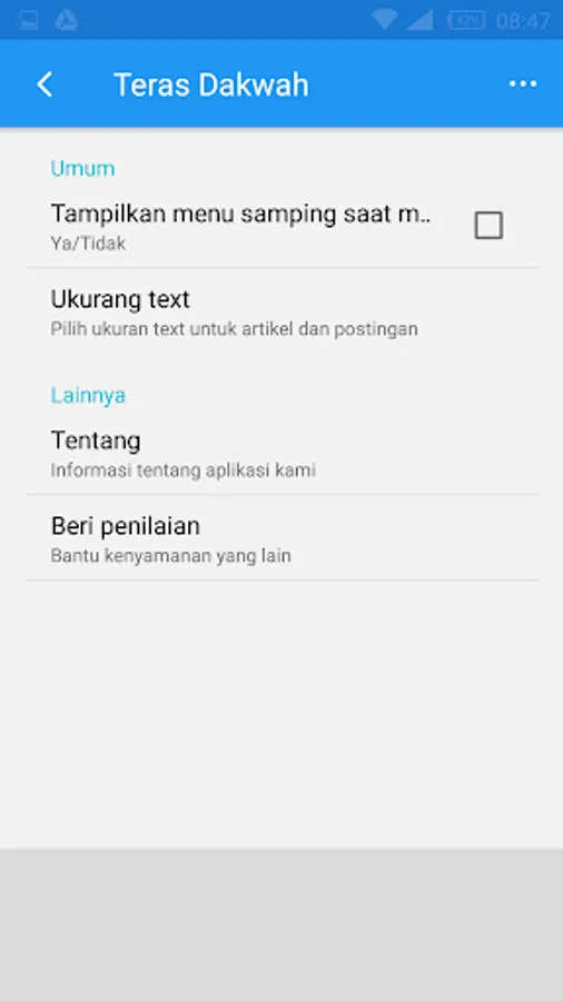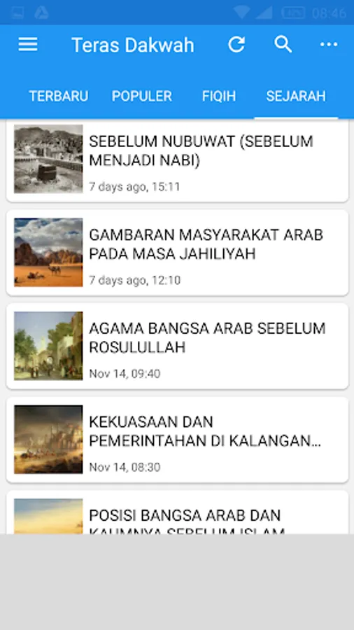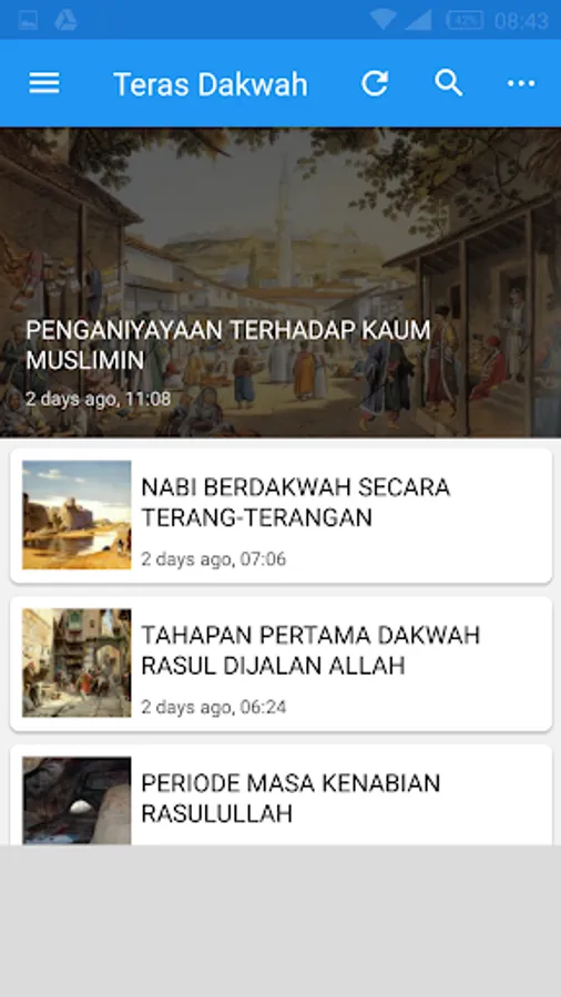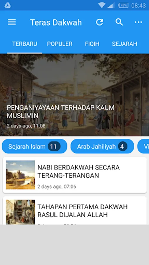 This application displays some features helpful information, such as Islamic History, Law Fiqh, Tafsir Al-Qur'an, taken from several books such as the book of Tafsir Ibnu Katsir, a bouquet of Abul Fida 'Imaduddin Ismail ibn Umar bin Kathir al-Qurasyi we known by the name Ibnu Katsir. And also take on Syarah an-Nawawi Hadiths Arba'in bouquet of Al-Imam al-Allama Abu Zakaria Muhyiddin bin Neural an-Nawawi who is often known by the name Imam Nawawi ad-Dimasqi. Also took from the book Ar-Raheeq Al-Makhtum bouquet Shafiyurraman Shaykh al-Mubarakfuri author Nabawiyah Sirah. And many other information such as the Islamic News today, a collection of video lectures religions together in one application which we named Application Propagation terrace.