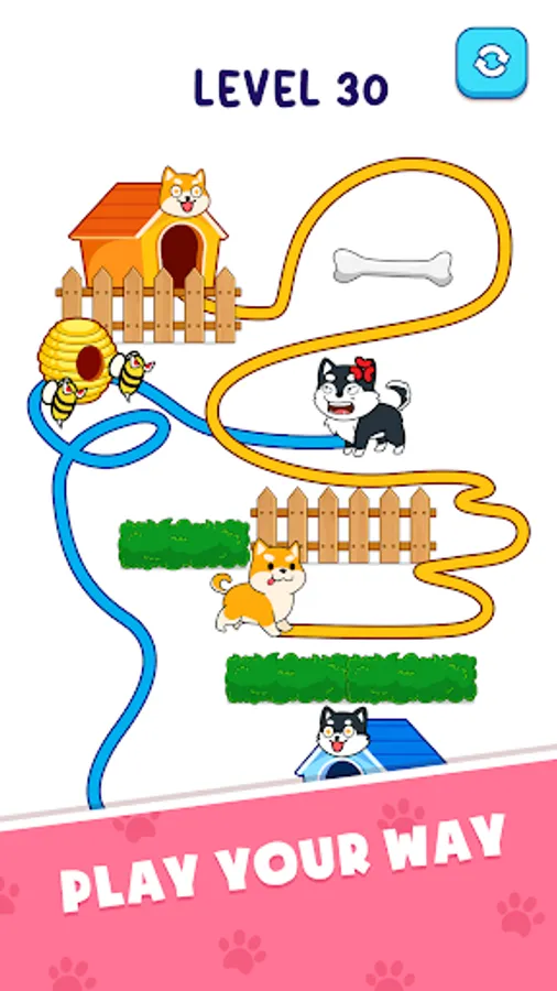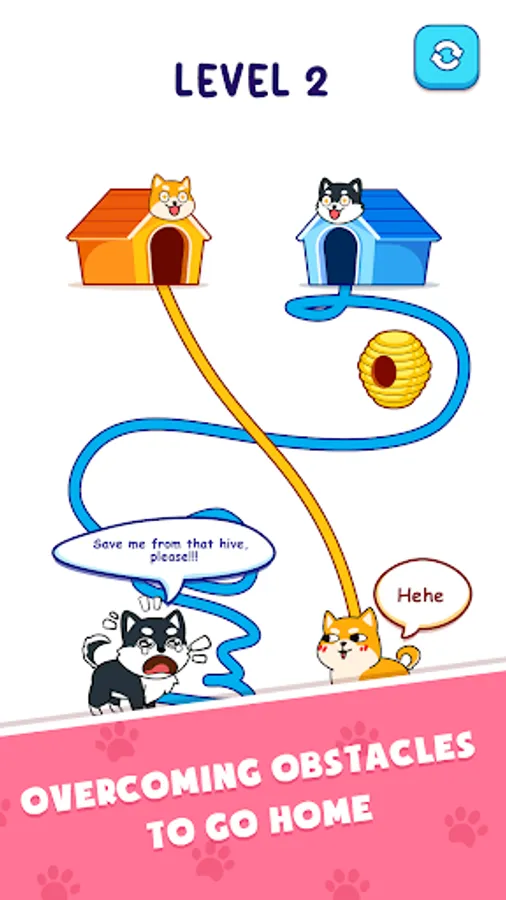 In Doge Rush to Home: Draw Puzzle, your mission is to find the way to reach the dog house.