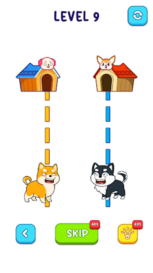 You need to help dogs find their food and draw to doge home, draw a line between the doge corresponding houses, and avoid the villains from bumping into each other.