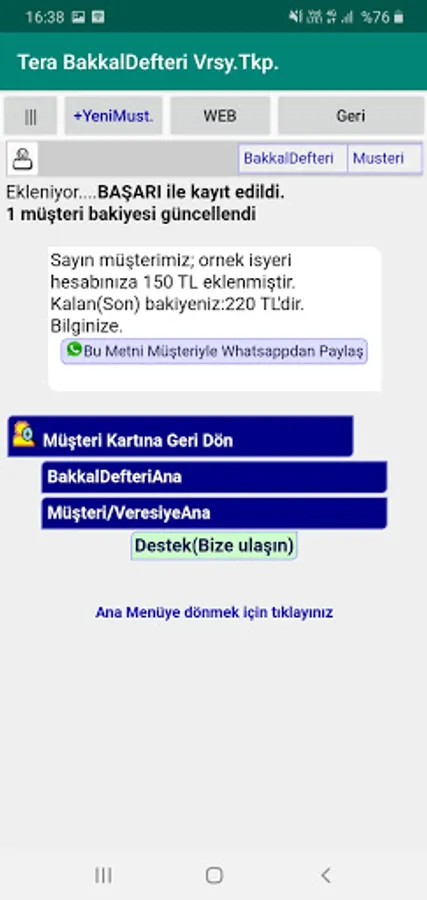 Just record what you receive, we process it day by day, hour by hour, into the system automatically, and report it with a single click whenever you want. In addition, we automatically notify your customers of everything you add or remove via whatsapp or corporate sms.
