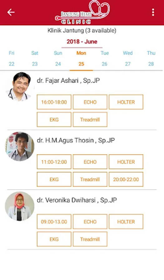 Aplikasi Bandung Heart Clinic adalah aplikasi android resmi yang dipublikasikan oleh Bandung Heart Clinic untuk memudahkan pasien dalam melakukan reservasi/booking pelayanan kesehatan seperti konsultasi dokter spesialis jantung, treadmill, echocardiography, dan holter.