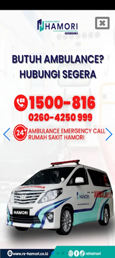 Hamori Mobile App merupakan Aplikasi mobile yang dapat memudahkan anda untuk mencari informasi terkait pendaftaran, daftar dokter beserta jadwal praktik, dan informasi lainnya terkait pelayanan yang ada di Rumah Sakit Hamori Subang