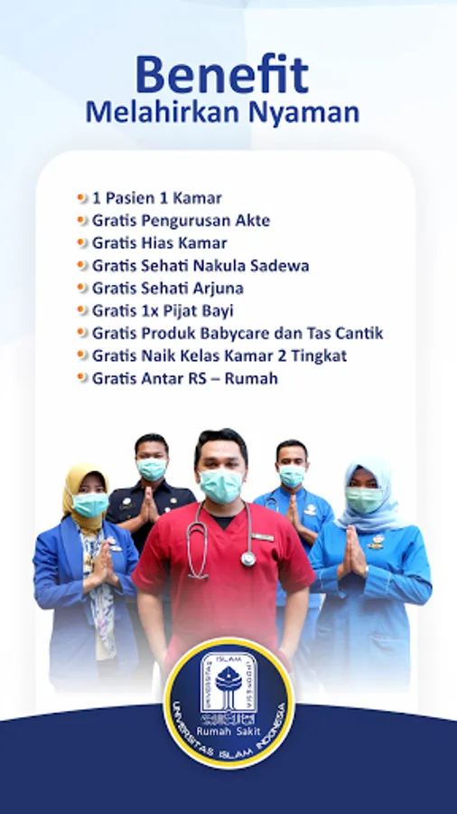 RS UII presents a breakthrough in ease of innovation in one hand, namely RSUII Mobile Applications (RIMO). The main features of RIMO make it easy for Healthy People to make an appointment with a doctor, get a booking code and queue number for the Polyclinic at once, and be able to find out the queue number that has been going on at the Polyclinic in real time.