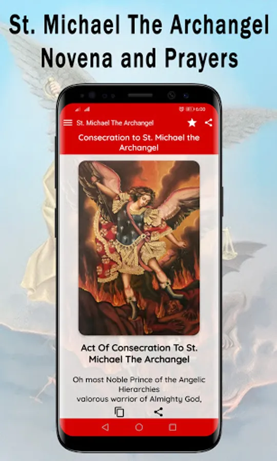 Our application Prayer of St. Michael the Archangel was created in a careful and detailed way, to offer its users a pleasant experience with a simple, intuitive and beautiful interface. It also offers you the possibility to use the images of St. Michael the Archangel as wallpaper for your mobile phone.