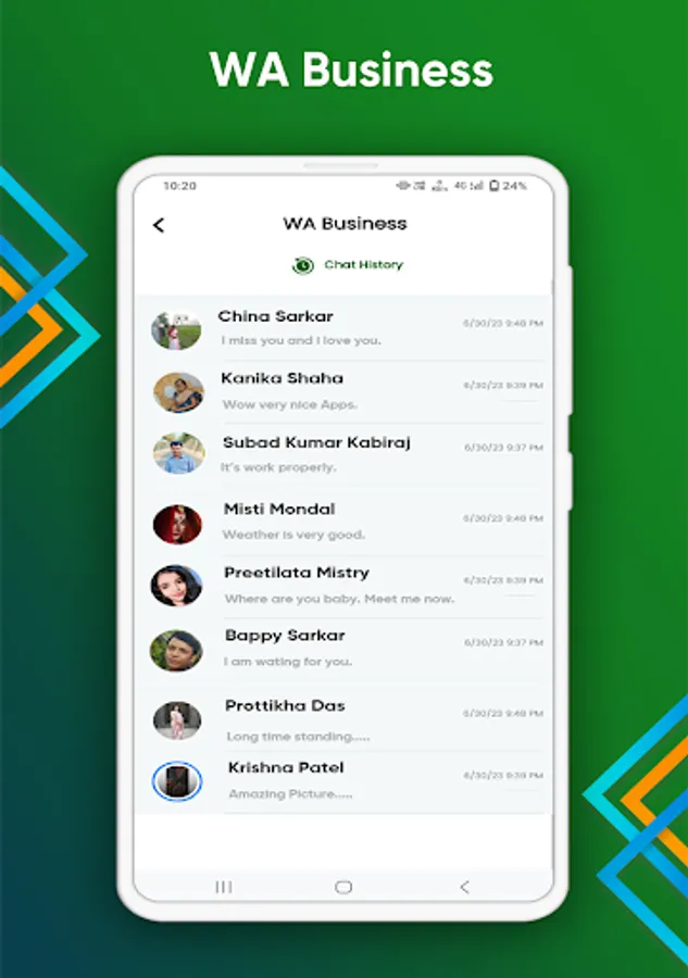 Recover recently deleted unseen WA messages. If a person deletes the WA Business message he has sent. Just open the app and view all deleted WA chat.