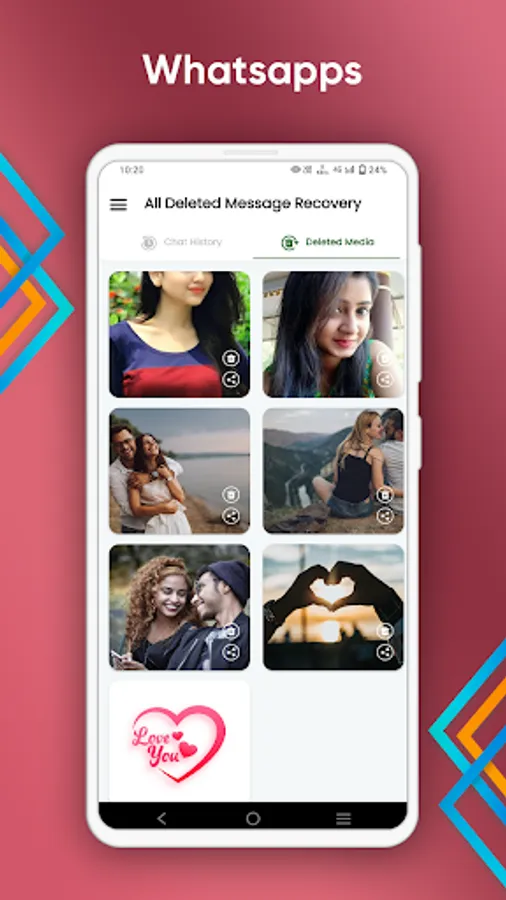 Also WA Recovery App Restore media files (pictures, videos, voice notes, audio, animated gifs, and stickers) that will appear in the deleted media folder.