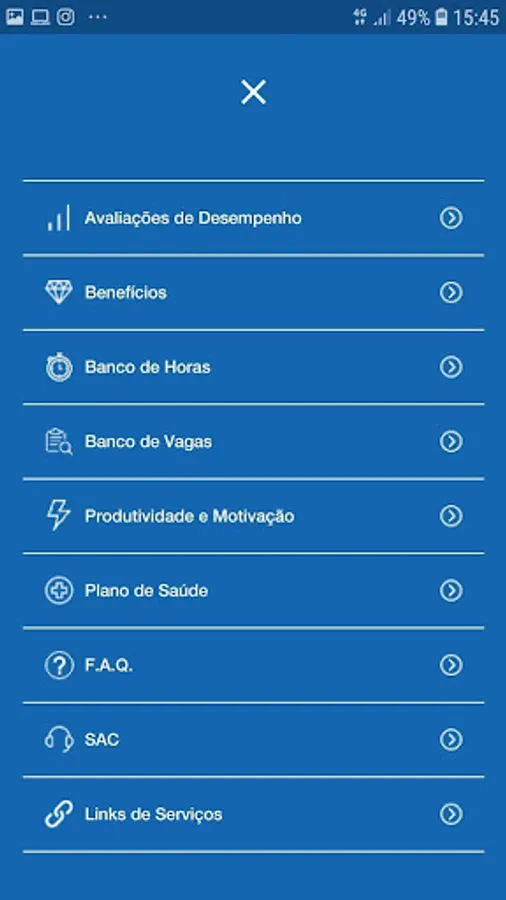 The Application provides information on employees, payslip, income report, active benefits, service link, time bank, appointment consultation, vacations, operational performance evaluations, vacancies bank, FAQs, Digital Point, Satisfaction Survey.