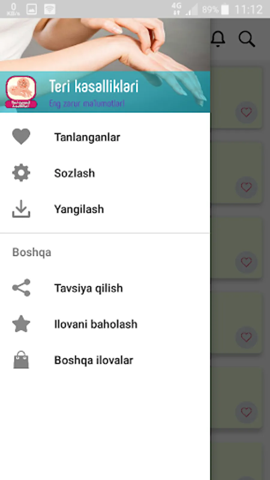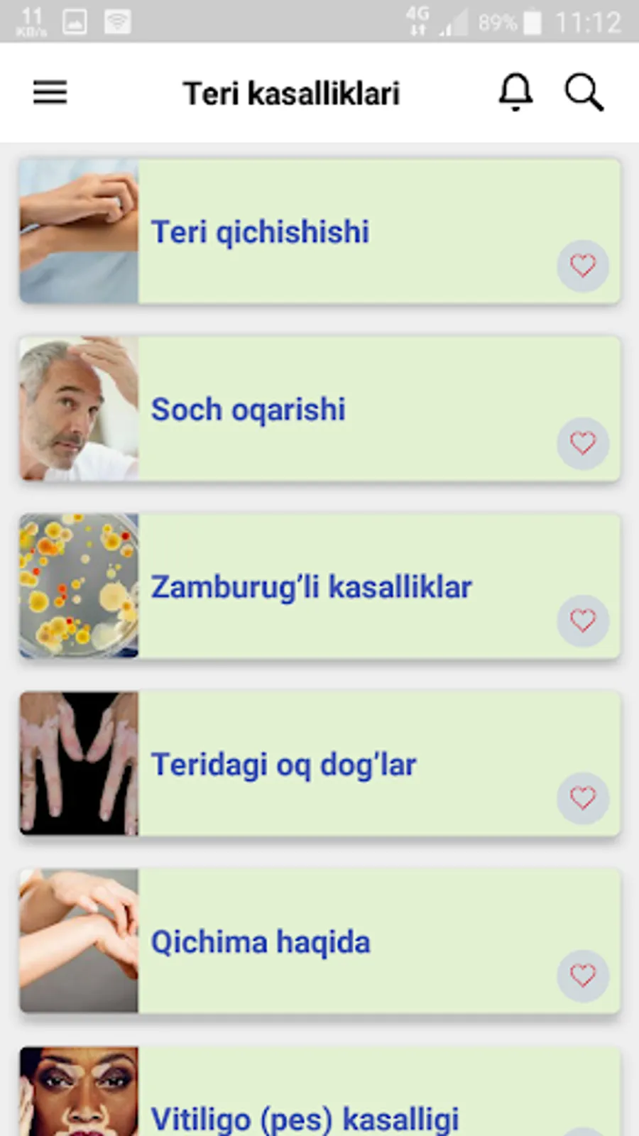 Odamda uchraydigan Teri kasalliklari toshma toshishi, dogʻ, pufakcha, tuguncha, qipiqlanish, yaralanish, terining shilinishi, yorilishi va boshqa tarzida namoyon boʻladi. Tashqi muhitdagi har bir fizik va kimyoviy omillar terida turli yalligʻlanishlar (dermatitlar) paydo boʻlishiga olib keladi; bulardan qavarish, bichilish, sovqotish, kuyish birmuncha koʻproq uchraydi. Terining talaygina kasalliklariga biologik omillar, mikroskopik zamburugʻlar (qarang Terining zamburugʻli kasalliklari), bakteriyalar, hayvon parazitlari (qarang Qoʻtir) va viruslar (qarang Soʻgal, Uchuq) sabab boʻladi.