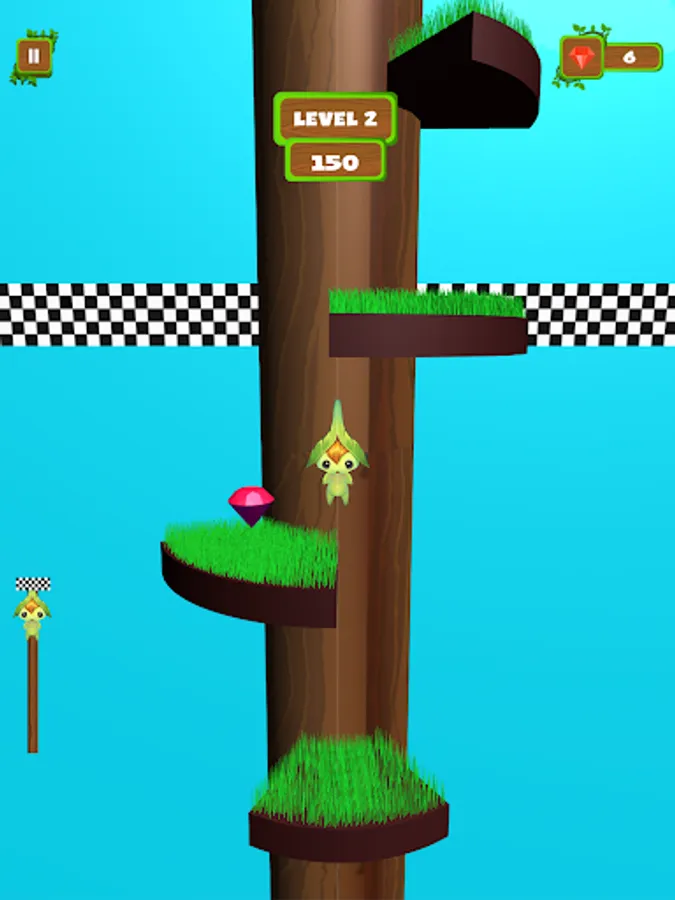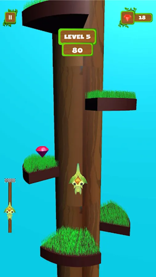 Use swipe on-screen controls to move the Genie. climb the tree, and get to the finish line to win the game and move to the next level.