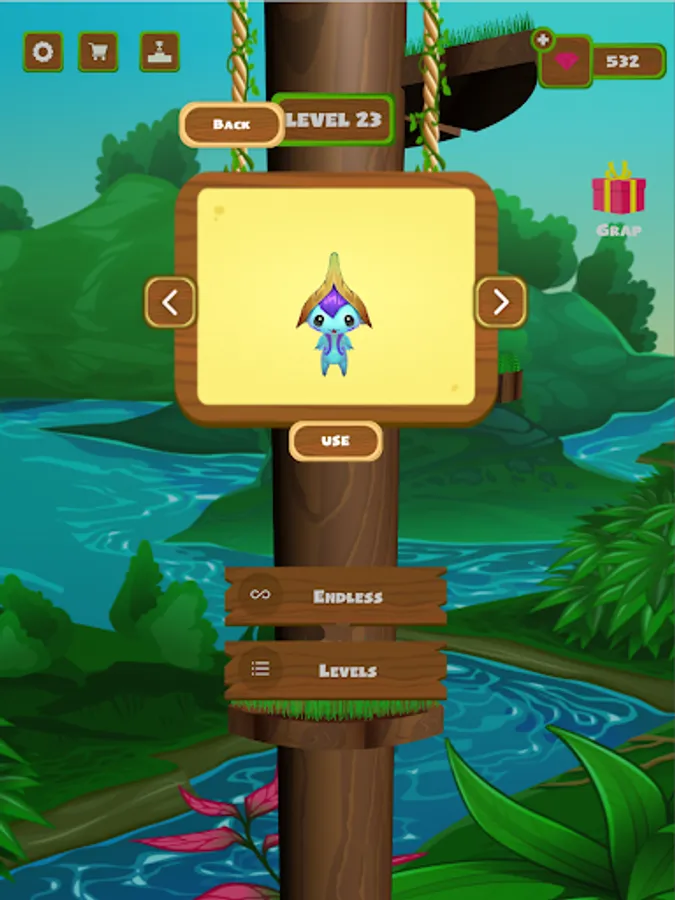 Jumpy Genies is a Jumpy game. Help genies to climb the tree to reach their top level and collect all jewelries to upgrade your Genie.