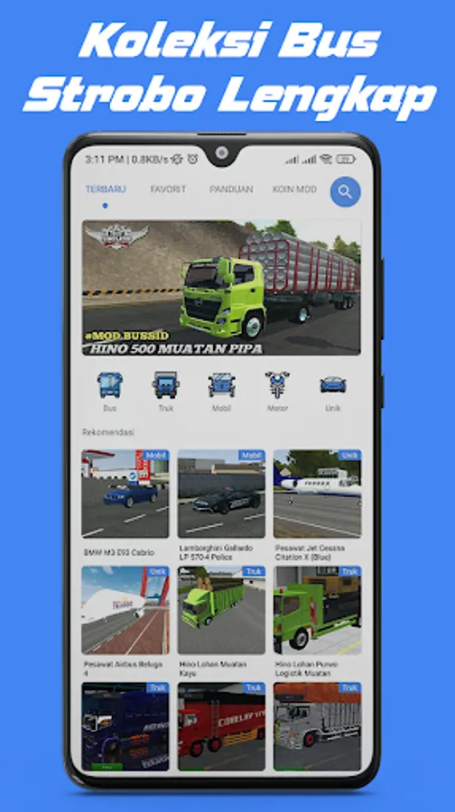 This application has several categories according to their type, such as cars, motorbikes, trucks and buses. more than 500 ++ mod collections that already exist in this application and will continue to be updated. This application is also complete with livery so that the appearance of the vehicle will be more attractive than usual.