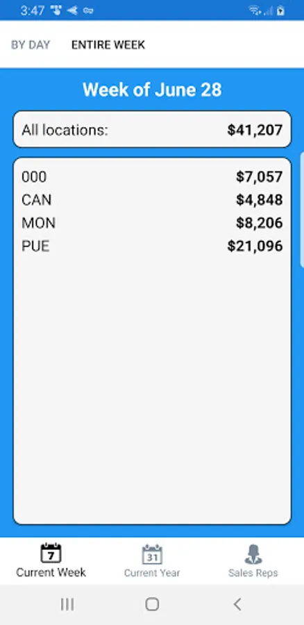 This app connects to SIMS and retrieves sales totals information using the Shift-F1 Hotkey. The user can then view totals for:
