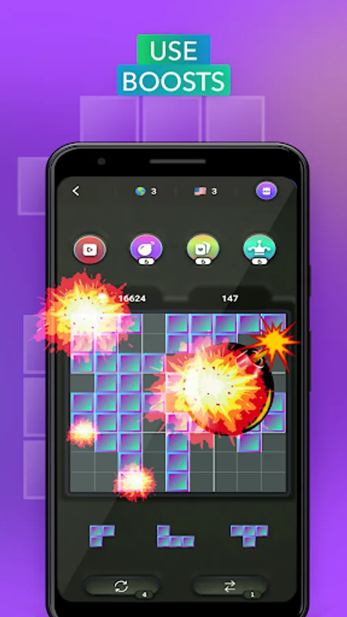 ✅ Incredible boosts: bomb, Joker, shuffle, turn, and piece swap.