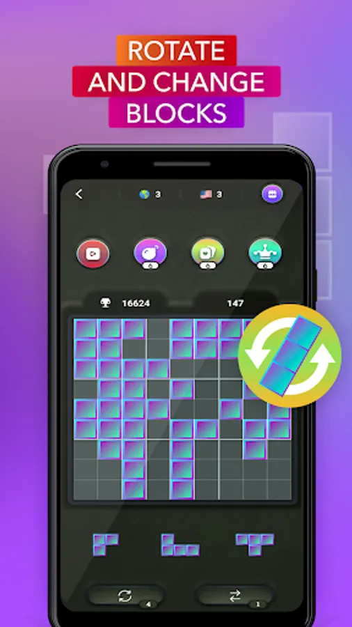 Unlike most classic block puzzles, in our game, you can join blocks and rotate them however you want.