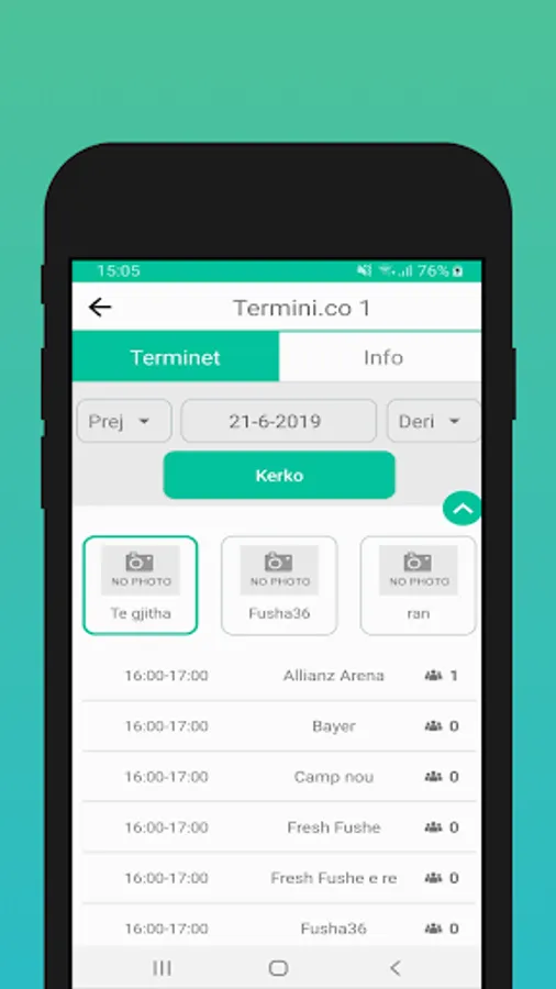 Termini është një platformë digjitale e cila është zhvilluar ne web dhe mobile, për lehtësim në menaxhimin e rezervimeve si dhe do të ofrojë promovim për palestrat e sportit.