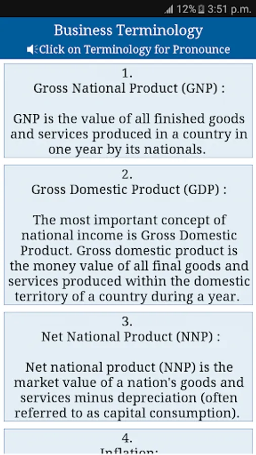 In this app you will get different types of terms and terminology about Business and Economic and others.