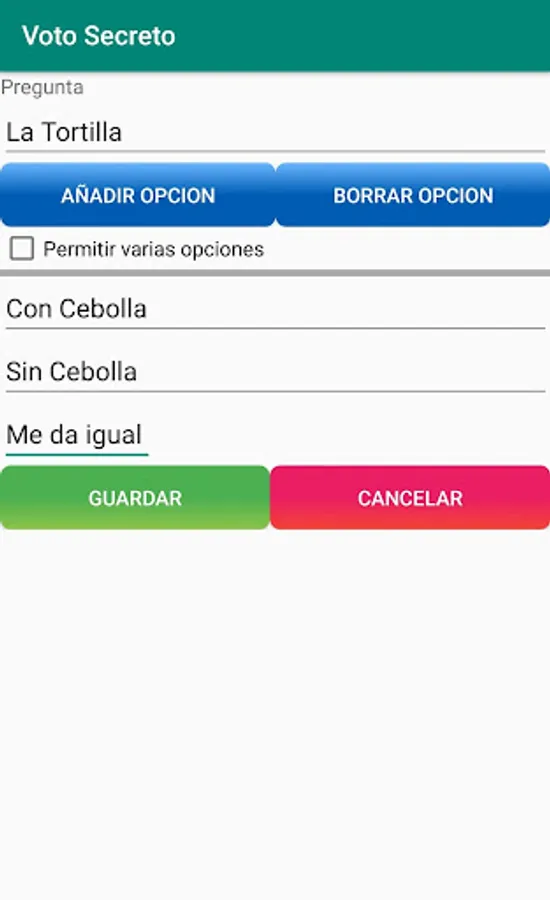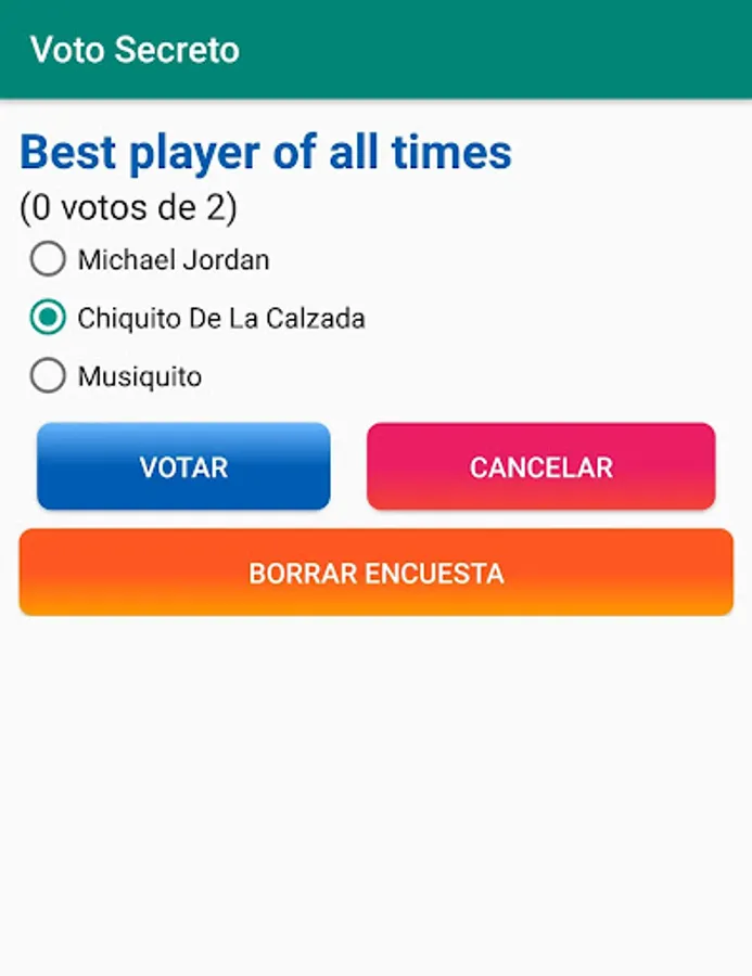 This application allows you to ask a question to your friends and vote anonymously.
