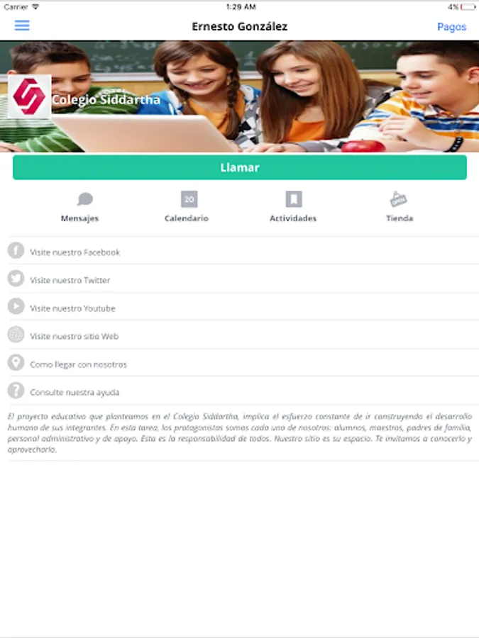 Schooleye is an application that connects parents with school, allowing parents to know calendar of events, activities, surveys, payment, campus; in addition to chat with the school administration and teachers. They may also consult the catalog of products that the school has to complement the education of their children.
