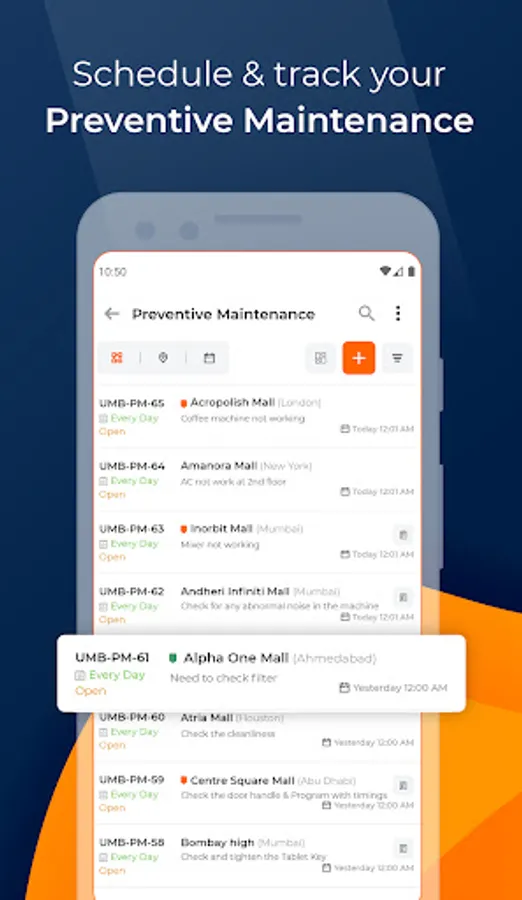 Add schedule and activity for the assets and hardware to maintain care before machine failure/breakdown occurred for the multiple assets with the location basis. Create a schedule for daily, weekly, monthly, annually, custom activities.