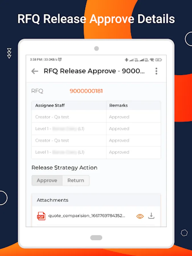 In our app anyone is able to see the listing, where the all RFQ list will be available with its status, ‘created by’ and ‘created at’ details.