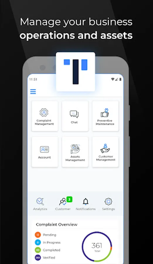 Create complaints on having issues with any of assets and hardware on a ticket basis and assign to the responsible staff or team. It carries details with the complaint created date, location, name, status and allows you to take action and track the details of it. And store the all-time complaints history and display it on dashboards.