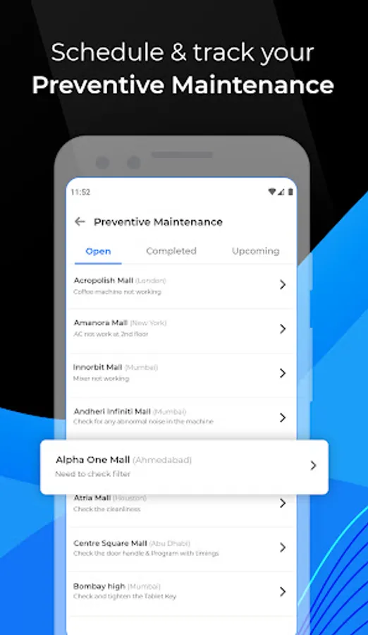 Add schedule and activity for the assets and hardware to maintain care before machine failure/breakdown occurred for the multiple assets with the location basis. Create a schedule for daily, weekly, monthly, annually, custom activities and assign them to the service provider or staff members. It helps to keep assets healthy and increase the life of assets.