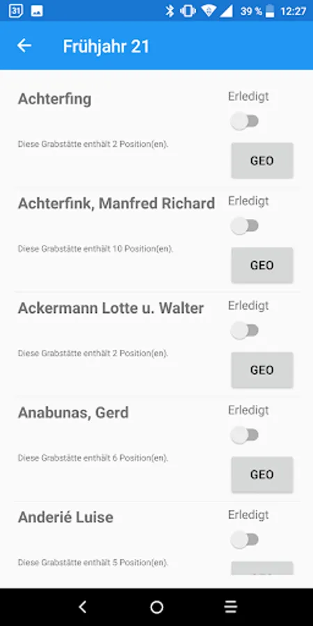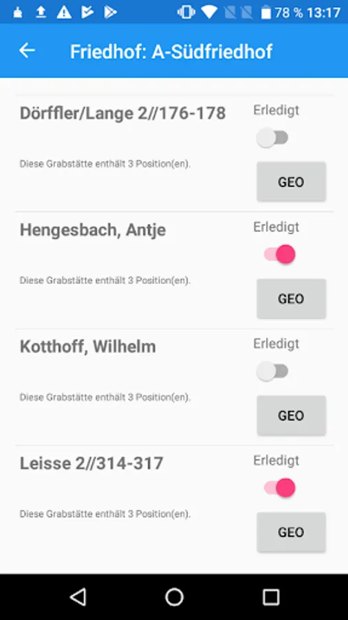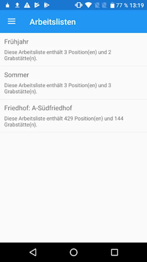 This app is used to synchronize and edit work lists from X5. It is possible to use navigation to the grave site and to save photos of well-tended grave sites and upload them to an FTP server.